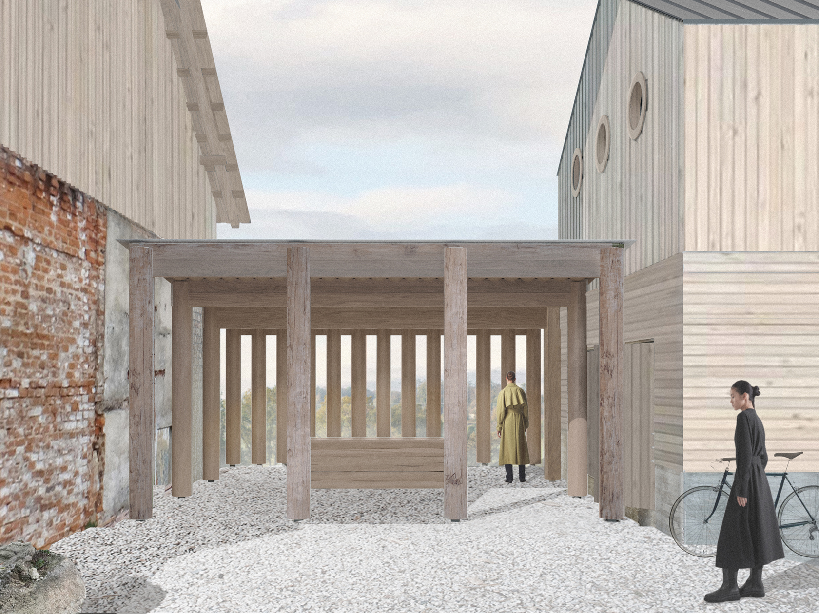 The new roof will preserve the existing brick walls. This new sheltered space will become a place for theatre experiments and large-scale events of the MIRA creative community.