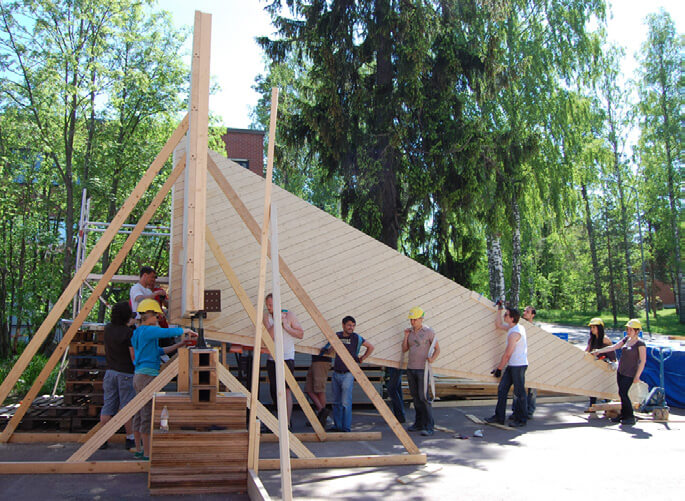 The project was realised as a part of "Wood program" in Aalto School of Architecture and was built by group of students.