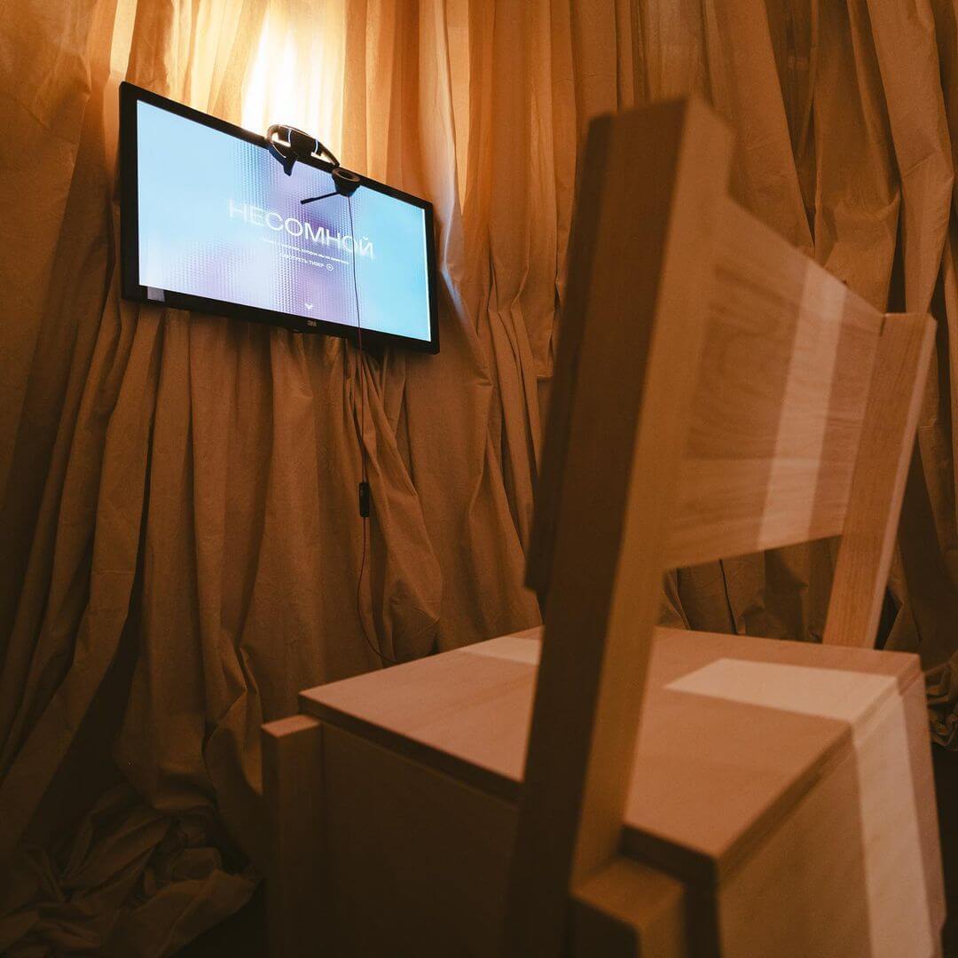 Пространственное оформление документального веб-проекта Еврейского музея и «Такие дела», посвященного теме Насилия. "Безопасная" на эмоциональном уровне архитектура инсталляции погружает человека в комфортную среду для обмена интимной информацией.